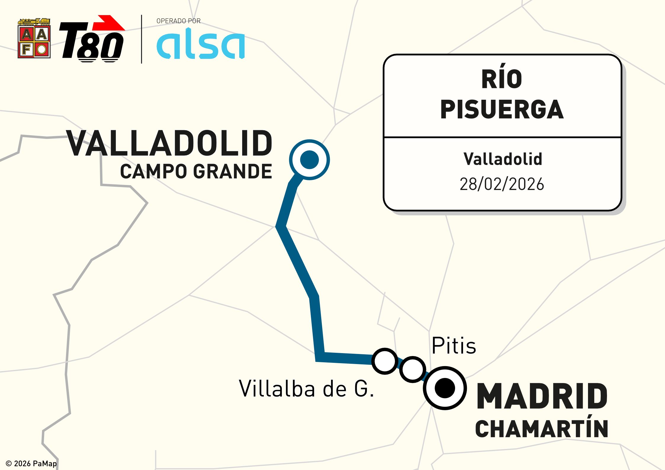 Como parte del adelanto del calendario de salidas en tren histórico para 2026, la Asociación de Amigos del Ferrocarril de Madrid, en colaboración con Alsa, tiene el placer de presentar la segunda propuesta de viaje a bordo del histórico “Tren de los 80” para este año. En esta ocasión, el recorrido nos llevará hasta las orillas del Pisuerga para visitar la ciudad de Valladolid.