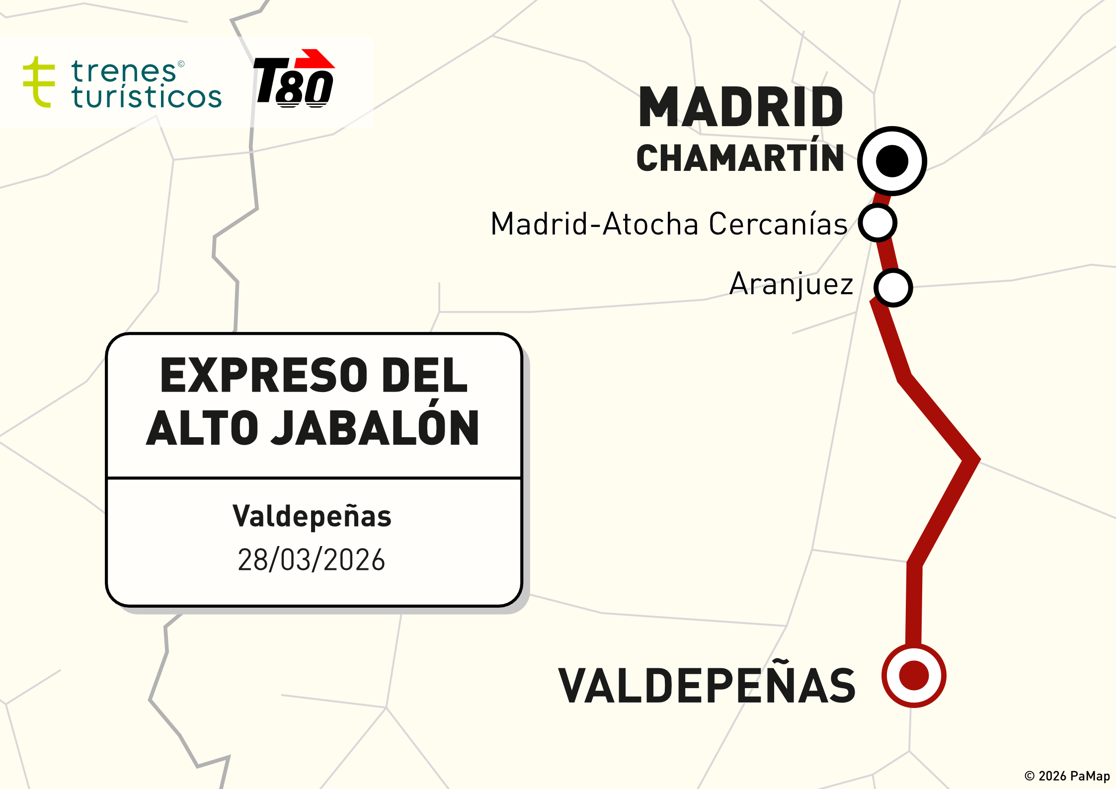 La salida se realizará a primera hora de la mañana desde la estación de Madrid-Chamartín, con paradas en Madrid-Atocha Cercanías y Aranjuez para la recogida de viajeros.
