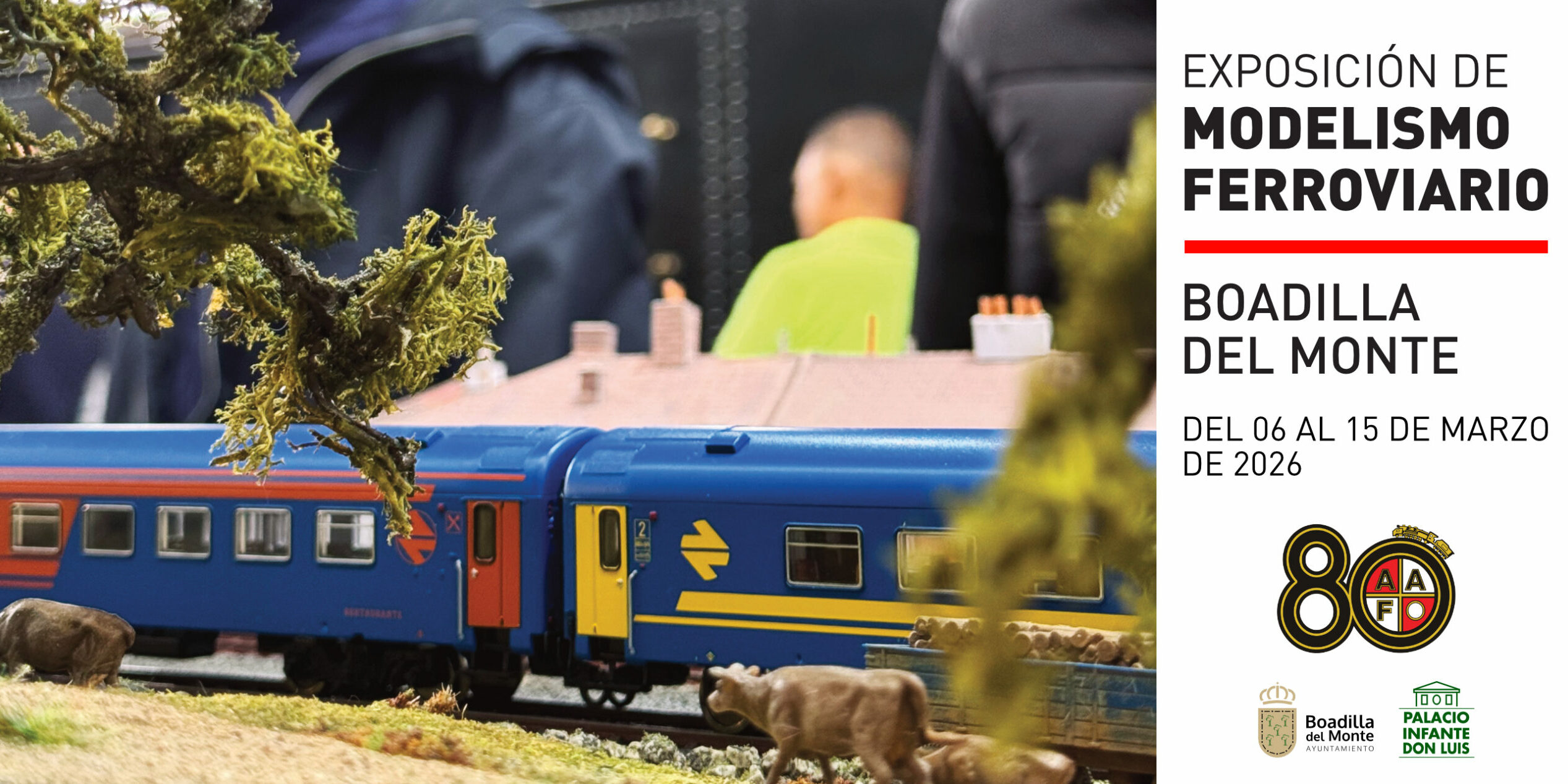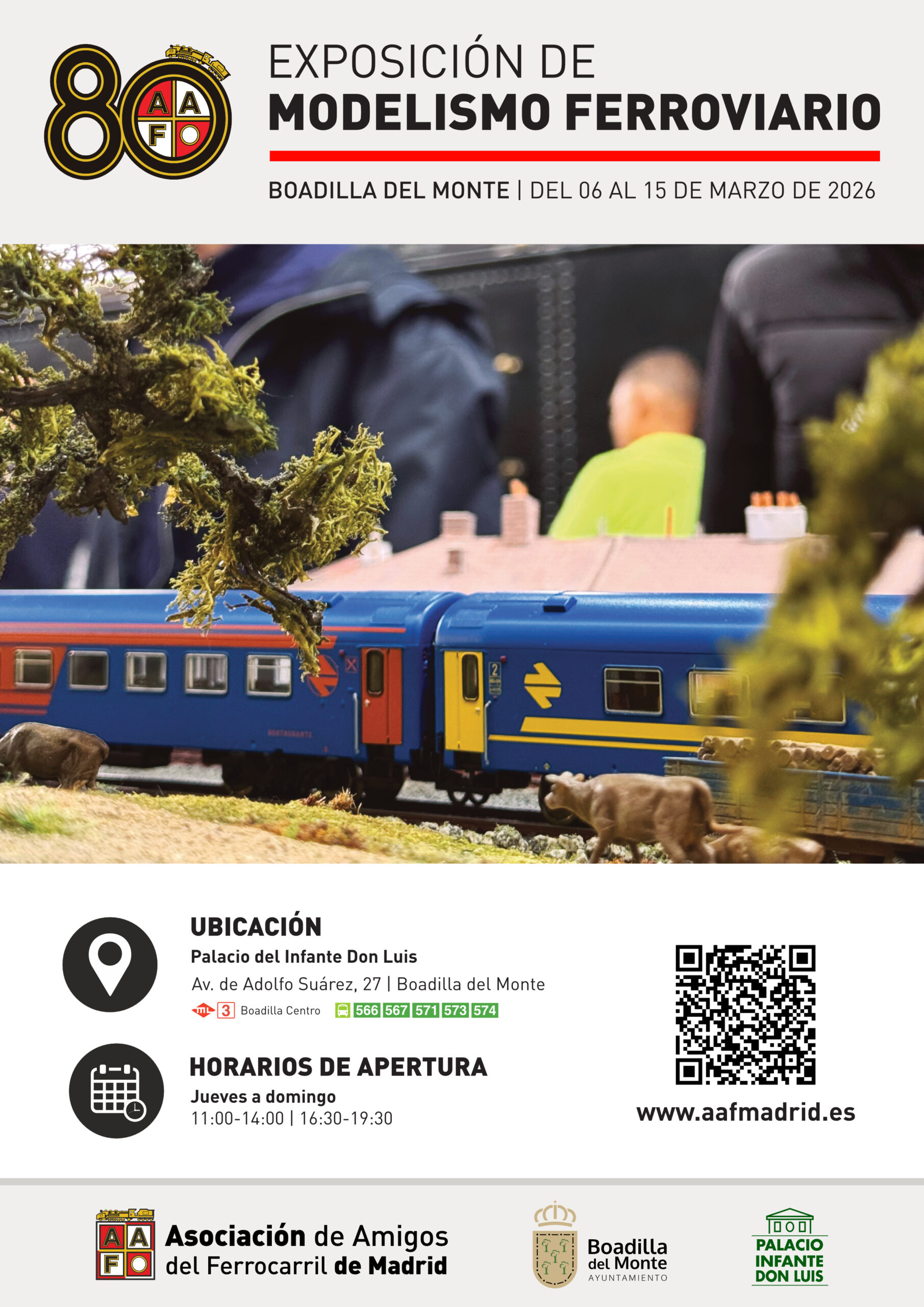 La Asociación de Amigos del Ferrocarril de Madrid (AAFM), en colaboración con el Ayuntamiento de Boadilla del Monte, celebrará entre los días 6 y 15 de marzo de 2026 una exposición de modelismo ferroviario en el Palacio del Infante Don Luis, cuyo conjunto, construido en 1765 por Ventura Rodríguez y ejemplo el neoclasicismo madrileño, constituirá un marco patrimonial de primer orden para la muestra.